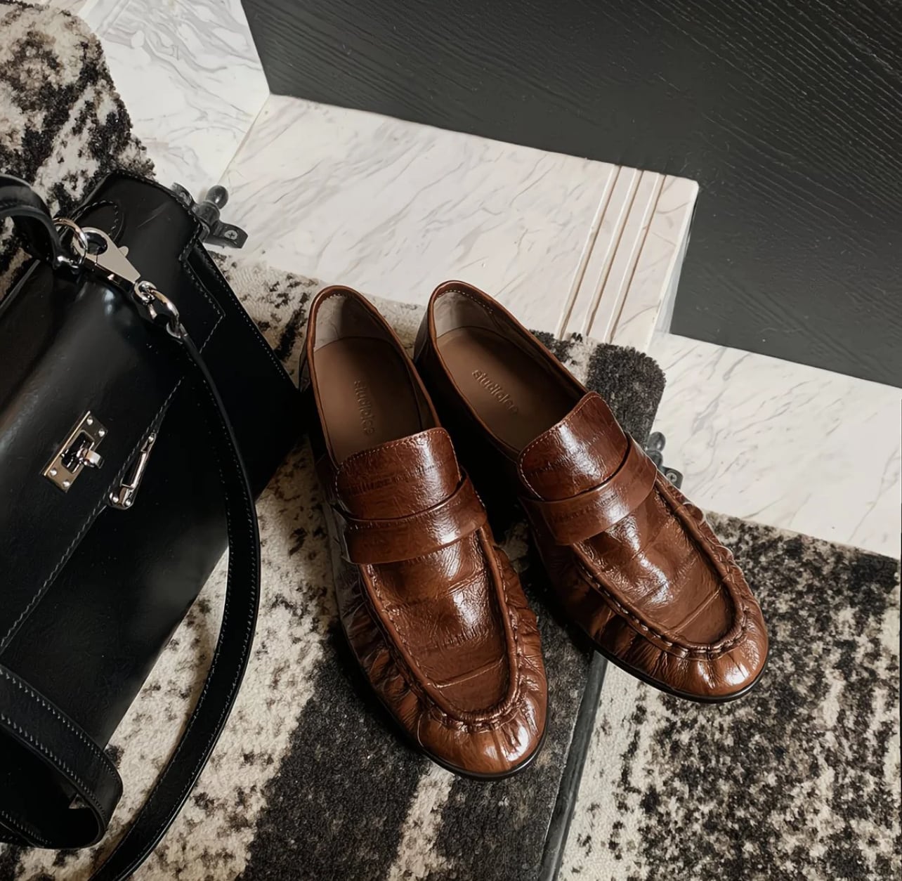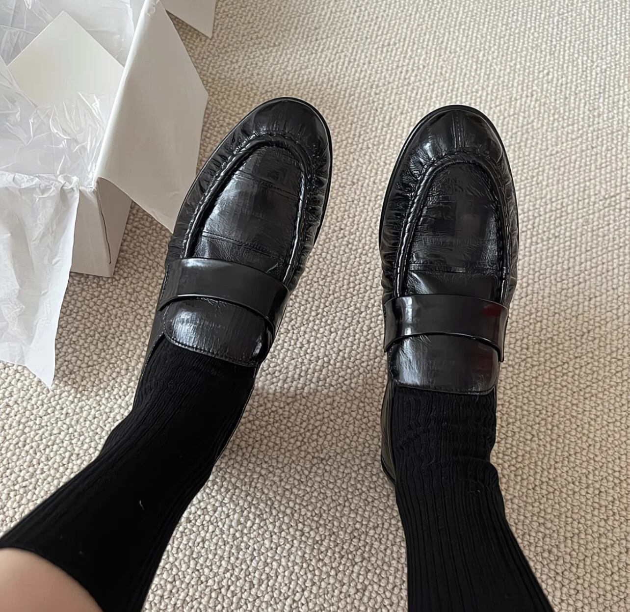 このラムスキン仕様のギャザー ローファーで、洗練されたレトロスタイルを楽しんでみませんか?あなたのコーディネートを華やかに彩る一足になることでしょう!