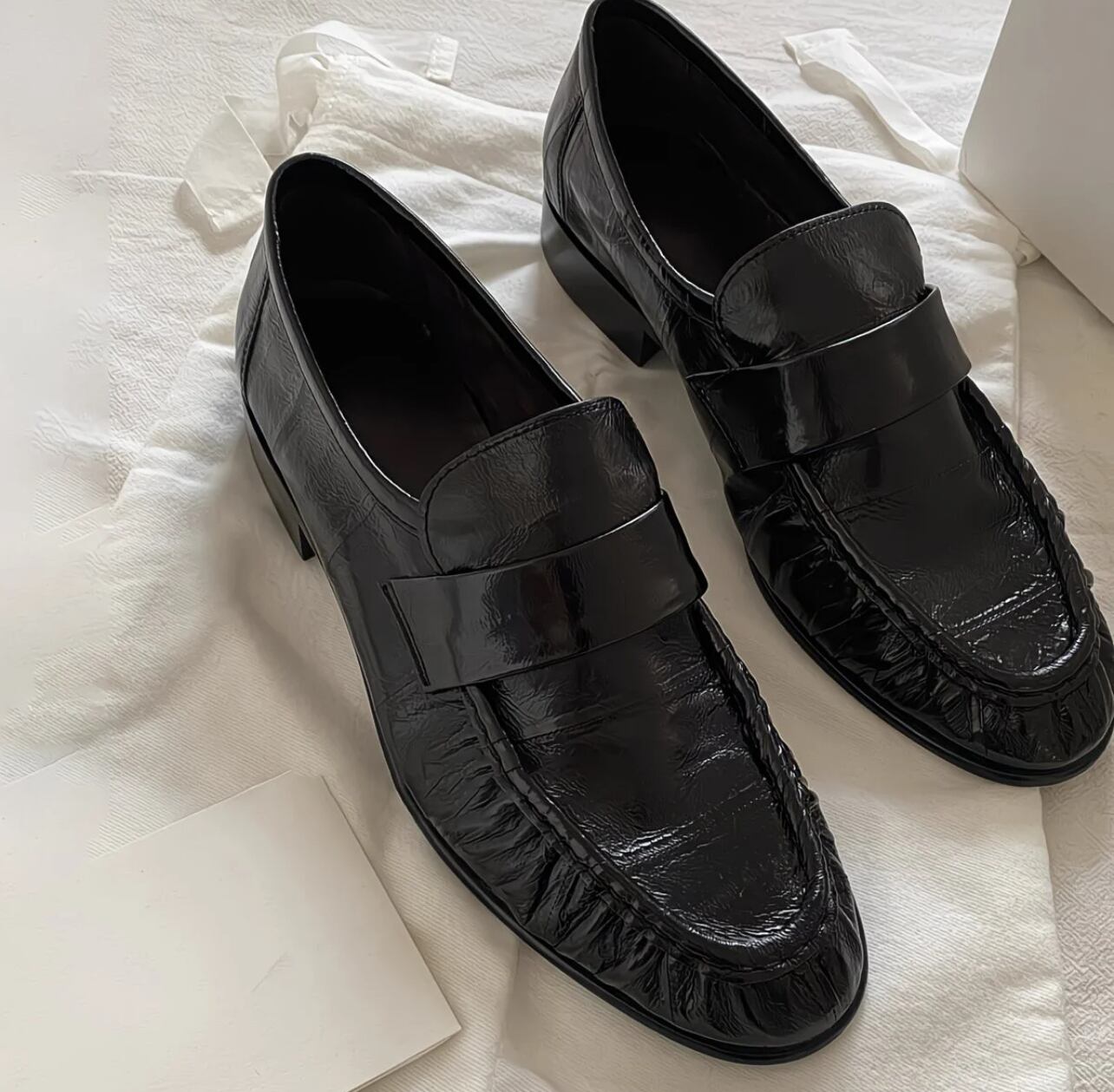 ラムスキン仕様〜レトロファッション 手作りギャザー ローファー 新作 イギリス風 レディース エナメルレザー フラットシューズ