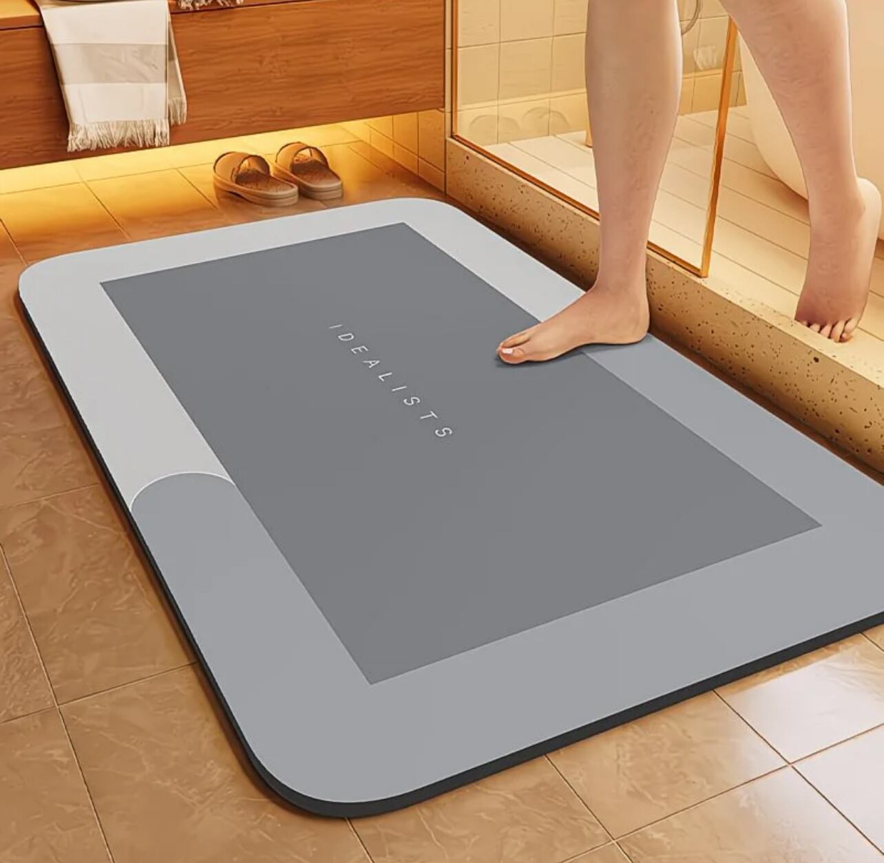 モダンでシンプルな 浴室用滑り止めマット 吸水・速乾 足置きマット トイレ用 防汚カーペット